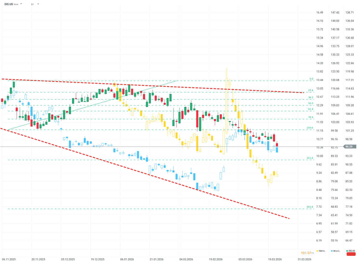Las empresas de medios han sufrido ventas significativas debido a temores sobre la IA y la calidad de sus estrategias a largo plazo. Tras caídas desde máximos recientes en rangos de dos dígitos, podría ser posible un retorno a los límites superiores del rango de consolidación.