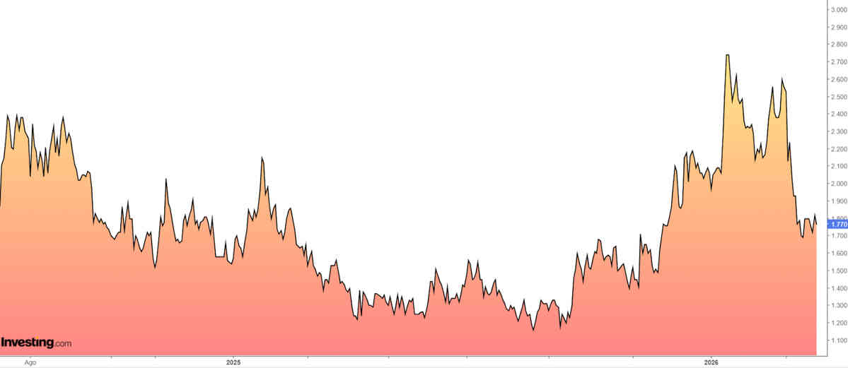 – Con datos del cierre del martes, cotiza con un descuento del 16% respecto a su precio por fundamentales (2,05 dólares). El consenso del mercado le da un precio objetivo promedio en 5 dólares.