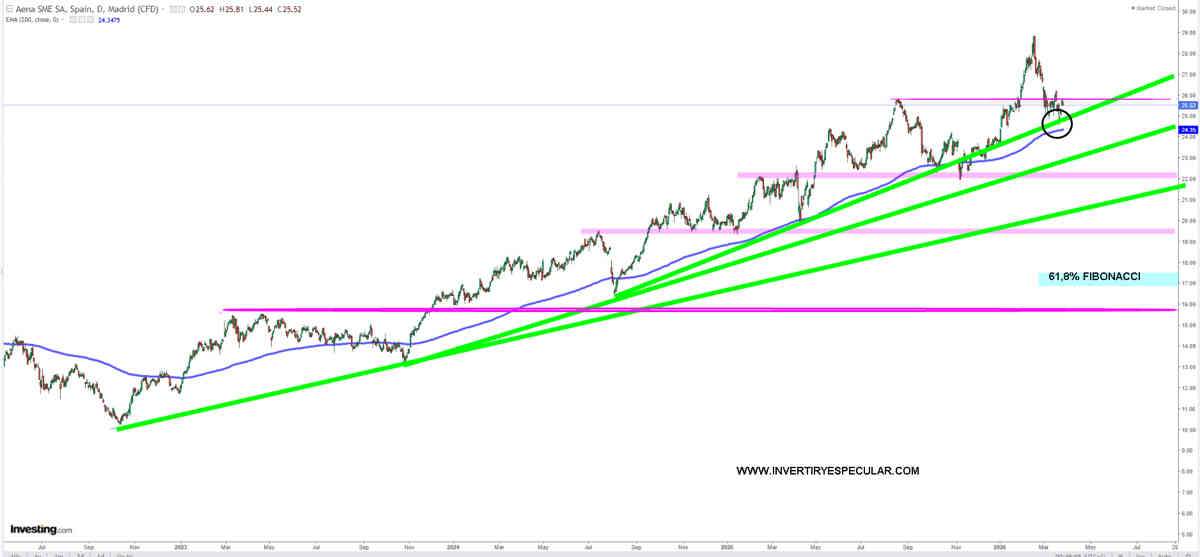 Nosotros no entraríamos si la EMA 200 y alcista del 2024 fallan y apoya sobre los 22 euros, eso para nosotros sería una valoración correcta por parte del mercado y algo correctamente valorado por el mercado pues su interés especulativo no es atractivo.