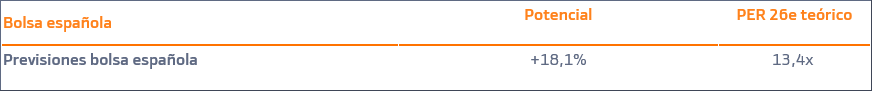 La bolsa española es la que ofrece mayor potencial de revalorización +18%, gracias al elevado peso de Bancos y Utilities en el índice. Ambos sectores incluidos entre nuestras preferencias.