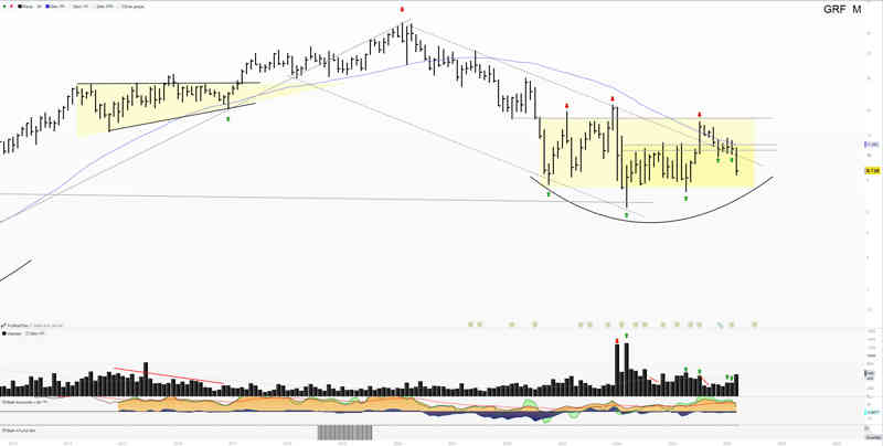 De fondo parece formar un cup&handle, aún pendiente de desarrollos más míticos, pero me recuerda a ROVI.