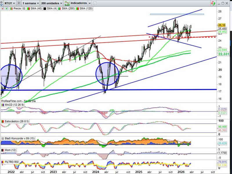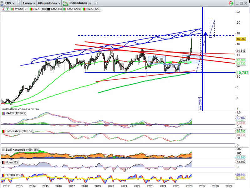 Puede seguir disparándose y encarar ya en el corto plazo sus máximos históricos antes de próximos comunicados catalizadores alcistas, recordemos que vamos a entrar en comunicación de resultados del primer trimestre del ejercicio 2026 sobre los diferentes activos.