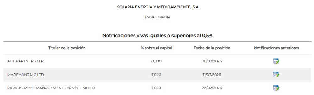 Sobre Posiciones Cortas, lo que está claro es que siguen las maniobras para poder salir con dignidad del valor y descartar sus apuestas bajistas, en comunicado de ayer, que se refleja hoy en la CNMV AHL PARTNERS LLP vuelve a comunicar compra de acciones de SOLARIA bajando en esta ocasión su apuesta bajista del 1,03% anterior, al 0,99% actual, con el valor en la zona resistencia clave de la proyección de la Taza con Asa, una vez la perfore, lo tendrán más complicado provocando el efecto SHORTSQUEEZE con el valor ya proyectado hacia objetivos de Gran Potencial.