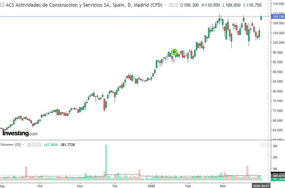 Las acciones de ACS (ACS1:MC) están liderando el selectivo IBEX35, experimentando una revalorización superior al 5% que ha situado el precio de sus títulos por encima de los 110 euros, niveles que reflejan la confianza del mercado en el nuevo ciclo de crecimiento del grupo. Este movimiento alcista ha sido catalizado fundamentalmente por un informe exhaustivo emitido hoy por los analistas de UBS, en el cual la entidad suiza no solo eleva su valoración objetiva de la compañía, sino que la sitúa como su principal apuesta dentro del sector de infraestructuras europeo para el ejercicio 2026.
