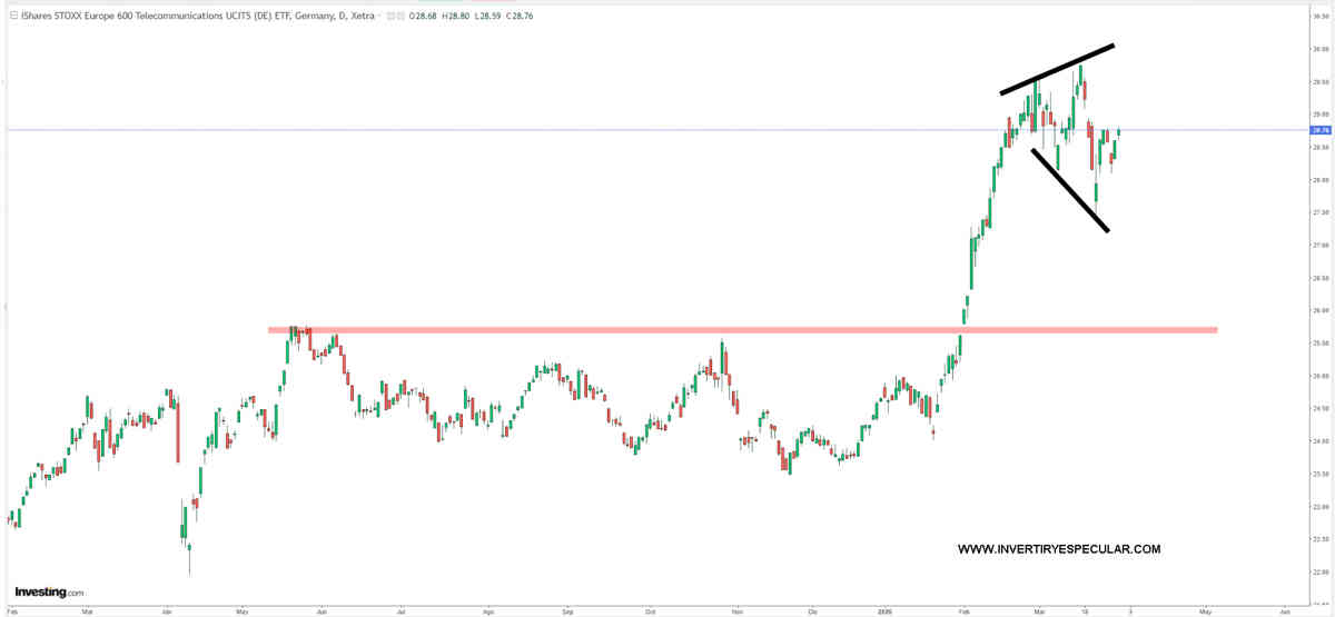 Le echamos un vistazo al sectorial europeo en el STOXX 600 vía ETF SXKPEX de Ishares y como queda muy claro Telefónica ha tenido el comportamiento contrario, el ETF está en zona de precio del 2016 haciendo un expansivo con un 16.7% de rentabilidad, por lo tanto, Telefónica habría sido el doble de rentable haber entrado en el ETF que en la acción.