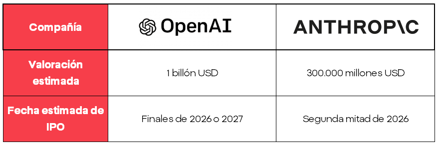 En 2026, la competencia entre OpenAI y Anthropic da un salto decisivo: ambas compañías preparan su salida a bolsa, trasladando su enfrentamiento al terreno bursátil. La batalla por el liderazgo de la inteligencia artificial generativa ya no se libra solo en laboratorios, benchmarks o lanzamientos de modelos.