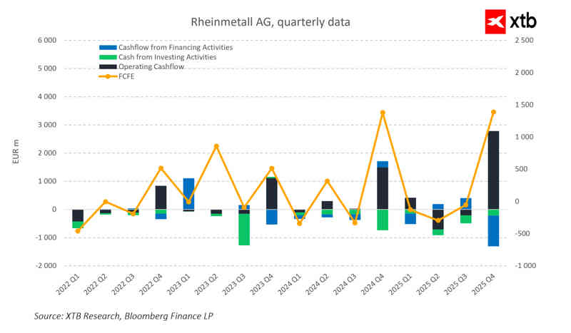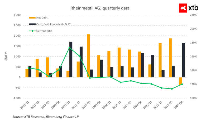 Al analizar el balance, la liquidez actual se mantiene relativamente alta, lo que indica una sólida salud financiera. El efectivo y los equivalentes de efectivo han crecido, y en el cuarto trimestre de 2025 se registró un incremento notable, lo que proporciona a Rheinmetall la flexibilidad necesaria para invertir y expandirse aún más.
