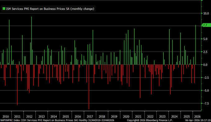 Otra lectura de máximo interés incluida en el dato ISM fue la partida de precios, ha escalado al alza de manera muy pronunciada, +7.7 puntos respecto al mes anterior registrando el mayor aumento desde 2012.