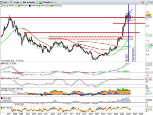 NATURGY 26,80€, +1,13% esta semana, a su ritmo. Sobre Gráfico Semanal, como el mercado, y mejor que este, cinco semanas consecutivas al alza rebotando desde zona soporte clave, cierra en zona de máximos históricos, el actual en 27,12€, aunque es en mecha de vela, en resumen, vuelta en W si ampliamos la vista al lateral […]