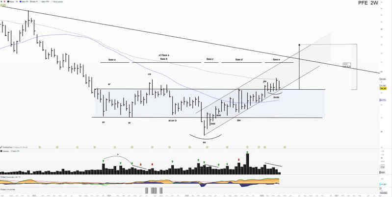 Técnicamente perfecta. La compartí en su momento en los 37$, comentando que probablemente estaba dando señales alcista con apoyos en el techo del rango acumulativo.