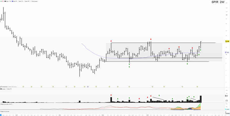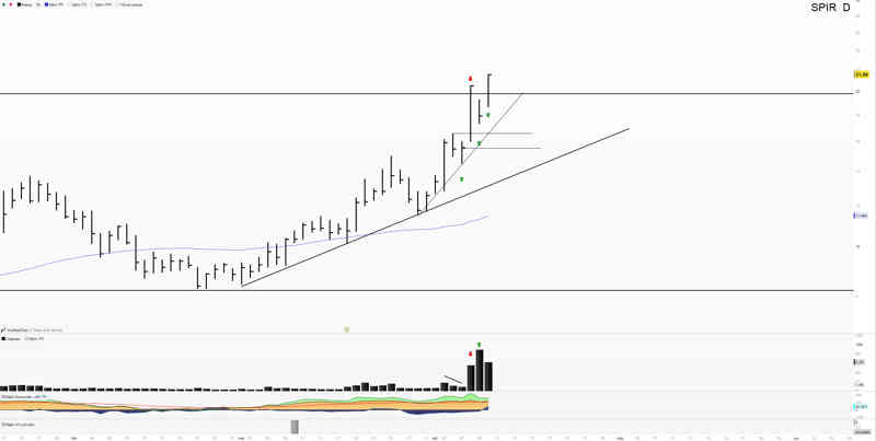 3. Bajo mi sistema da entrada especulativa corto plazo, y como todo nos lo indicaba, la sesión siguiente se dispara un 20%, haciendo nuevos máximos de 52 semanas y superando el máximo reciente anterior.