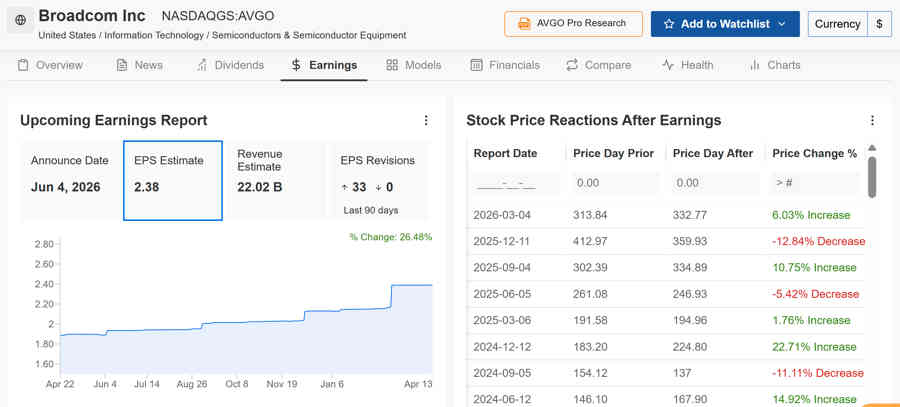 Broadcom sigue aprovechando la enorme ola de demanda de semiconductores para IA mientras se prepara para publicar su próximo informe de resultados. Las estimaciones de beneficios se han revisado al alza 33 veces en los últimos 90 días, frente a ninguna revisión a la baja, lo que refleja la creciente confianza entre los analistas.
