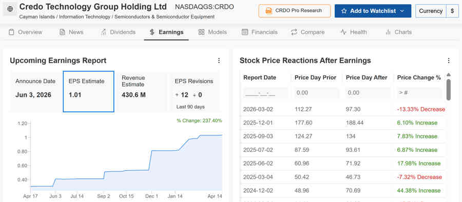 Wall Street prevé que Credo gane 1,01 dólares por acción, lo que supone una mejora del 240,4% respecto al mismo periodo del año anterior. Por su parte, se espera que los ingresos aumenten casi un 55% anual hasta alcanzar los 430,6 millones de dólares, impulsados por una demanda récord de cables eléctricos activos (AEC) e interconexiones ópticas que reducen drásticamente el consumo energético y la latencia en los centros de datos de IA.