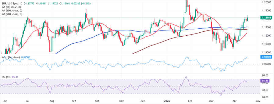 En el gráfico semanal, el EURUSD mantiene un sesgo alcista constructivo ya que el precio se mantiene firmemente por encima de la media móvil simple (SMA) de 20 períodos en 1.1698 y bien alejado de las SMAs de 100 y 200 períodos a largo plazo en 1.1211 y 1.0924, respectivamente, que en conjunto refuerzan un tono de demanda a largo plazo bajo el mercado. El Momentum apoya el caso alcista, mientras que el indicador RSI de 14 períodos se mantiene cerca de 5, dejando espacio para más ganancias.