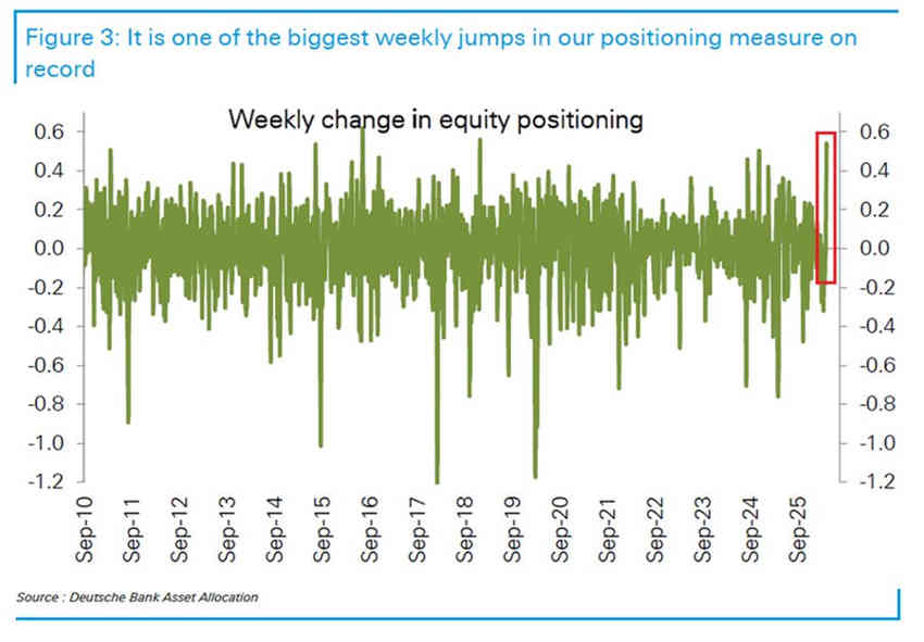 La posición compradora de acciones por parte de profesionales subió de nuevo la semana pasada registrando el mayor aumento semanal en 8 años, según datos de posicionamiento recogidos por analistas de Deutsche Bank.