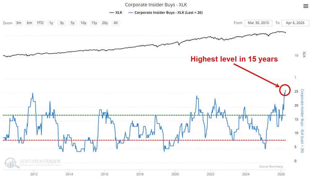 Interesante el dato de que antes de las compras de acciones por parte de los gestores y asesores, fueron como de costumbre los insiders quienes se anticiparon y aumentaron muy significativamente sus compras, especialmente en el sector tech, tal como informamos aquí hace unas semanas.