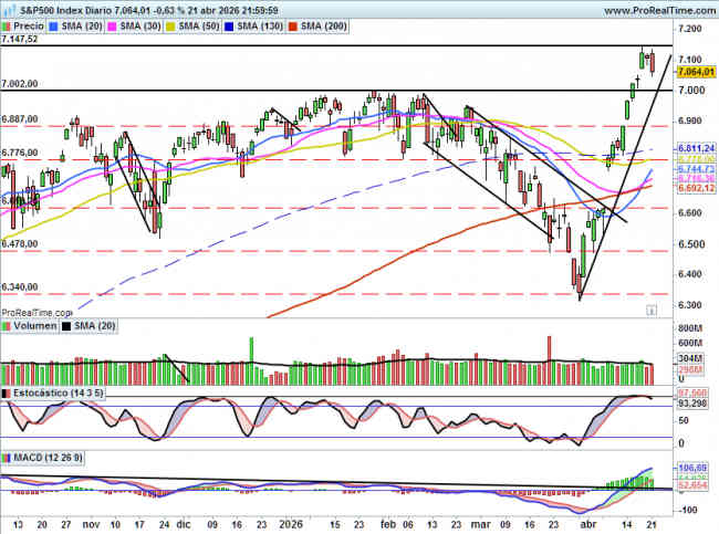 Si pierde 7000 si que todo se complicaría, siendo el objetivo principal el de cerrar el GAP alcista de 6887 y mas abajo 6776 puntos.