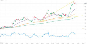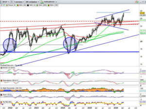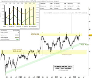 Desde su salida a bolsa, Daimler Truck desarrolla una sólida tendencia alcista, cuya directriz alcista marca una referencia de soporte clave entre 35,5 y 36,5 euros, precediendo la importante franja entre 28,20 y 31 euros. En los últimos dos años viene experimentando un aumento de la oferta a la llegada a niveles entre 43,3 y […]
