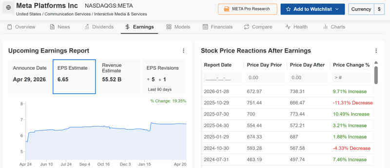 En el caso de Meta, los inversores se centran en la publicidad, la eficiencia y la interacción impulsada por la IA. Tras un repunte masivo desde sus mínimos, las expectativas son elevadas, pero aún no eufóricas. El consenso apunta a un fuerte crecimiento interanual de los ingresos, una expansión significativa del beneficio por acción y una disciplina continuada en los costes.