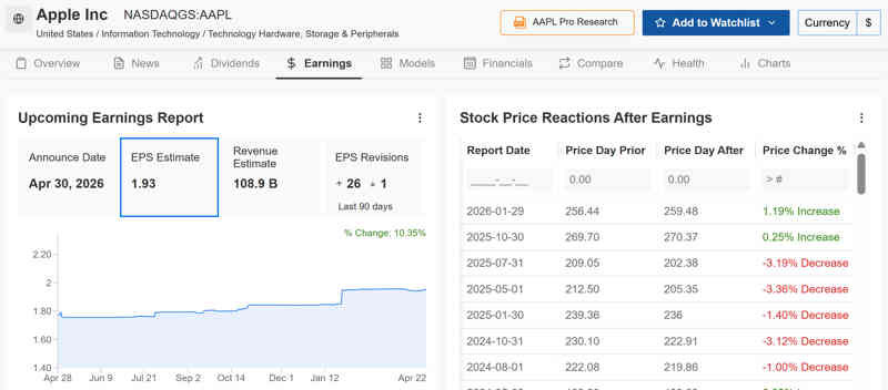 • Previsión: BPA de 1,93 dólares, ingresos de 108.900 millones de dólares