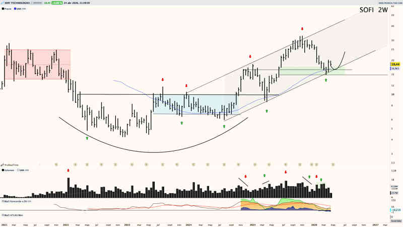 Del lado semanal aún tiene zonas complejas que superar, pero en el corto plazo se ve con claridad cambio de estructura, recuperación de media de 50 periodos y apoyo en AVWAP de mínimos.