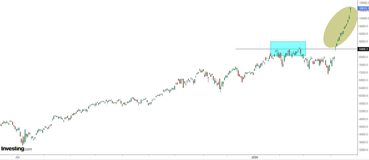 Desde 1928, esta es la primera vez que el S&P 500 ha alcanzado nuevos máximos históricos en 11 días o menos después de caer entre el -5-10%. Además, registró tres semanas consecutivas con una ganancia de al menos un +3%. Esto solo ha ocurrido dos veces en 76 años, y ambas precedieron a repuntes fuertes al alza.