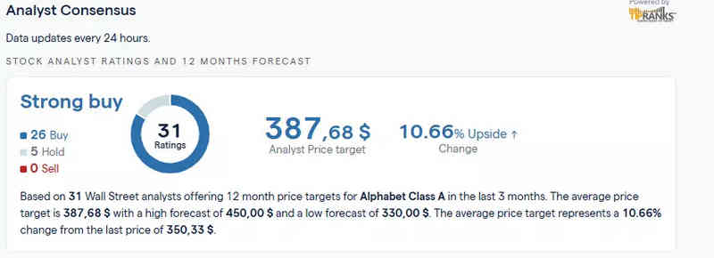 Consenso de analistas sobre Alphabet: Strong Buy con precio objetivo medio de 387,68 dólares