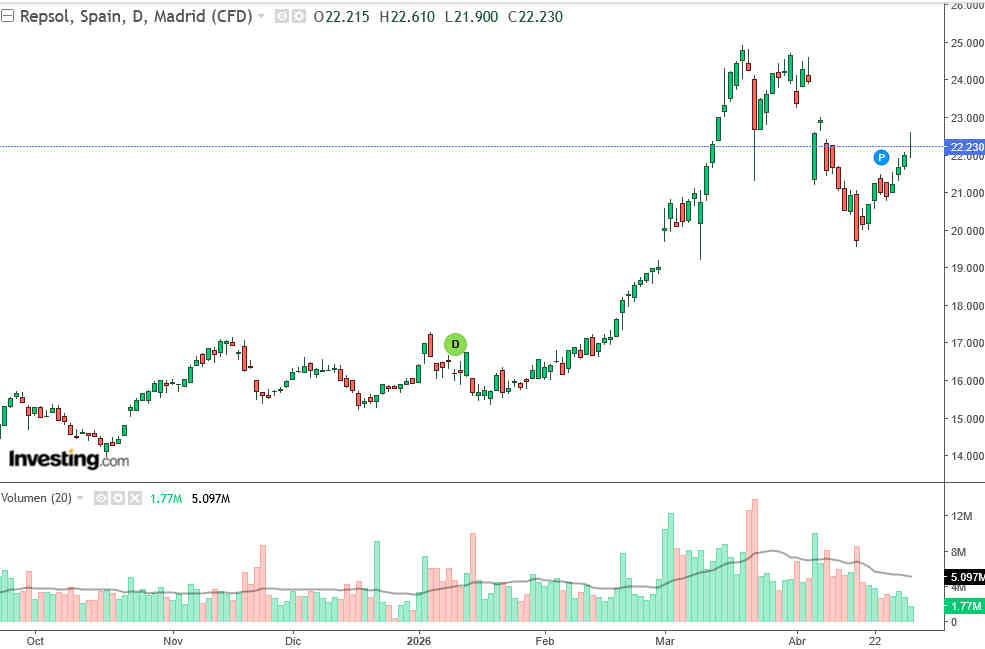 Estos resultados refuerzan la imagen de Repsol como un activo defensivo clave en entornos de inestabilidad política que presionan al alza el precio del petróleo. Todo apunta a que la compañía podría seguir mostrando crecimiento en los próximos meses, en un contexto donde la situación en Oriente Medio continúa siendo incierta, el flujo por el estrecho de Ormuz sigue limitado y las conversaciones diplomáticas no registran avances significativos, manteniendo al Brent por encima de los 110 dólares.