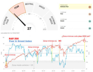 El pasado jueves el índice de miedo y codicia de la CNN reportó lecturas de 23, en terreno de miedo extremo. Resulta curioso ver cómo ante cualquier pequeña corrección en el SP500 (drawdown -3,16% desde los máximos históricos del 9 de octubre), el miedo aparece en las bolsas. En el gráfico inferior se aprecia cómo […]