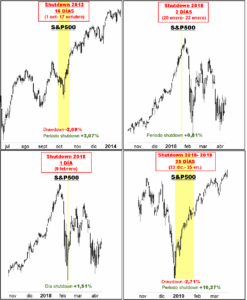Reacción del SP500 a los últimos cuatro cierres de Gobierno