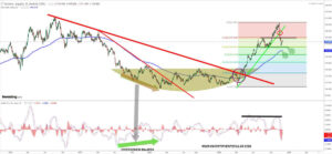 Si lo que hemos visto esta semana en el SP500 es un rebote técnico el cierre de hoy tiene que estar bajo la directriz que se obtiene uniendo máximos desde el último techo de mercado el 29 de octubre, y seguir siendo directriz bajista. Si esto fuere o fuese así tendríamos un patrón de cabeza […]