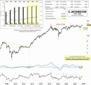 CIE (CIE1:MC) comienza a traspasar la importante barrera histórica entre 26 y 27 euros, máximos históricos desde el año 2018. La superación se produce con una configuración especialmente positiva en sus indicadores lentos, que sugieren una continuidad alcista durante los próximos meses. La clave, a nivel táctico, para un inversor de medio plazo estaría en […]
