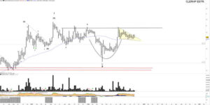 CLERHP Habíamos dejado aparcada la empresa tras un impulso de 5 ondas y comienzo de tramo correctivo A,B,C, el cual, pienso, que ya ha terminado. Parece prepararse para impulsos en forma cup&handle, tiene una hoja de ruta ambiciosa, que con cumplirse parcialmente dará buenos resultados. Reposa sobre media de 50 semanas, con forma de cuña. […]