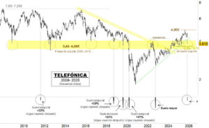 La caída de hoy de Telefónica (TEF:MC) transgrede el paso de la directriz alcista desde los mínimos de 2020, abriendo en los máximos en 4,90 euros un tramo correctivo complejo en el medio plazo. En el corto plazo presenta niveles clave de soporte en la zona de 3,65- 3,70 euros, donde esperaríamos que bajara en […]