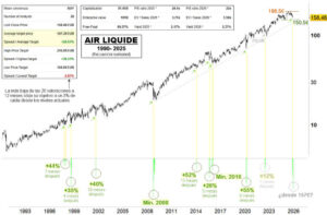 Air Liquide presenta el gráfico que toda cotizada querría, con una sólida tendencia alcista, con una Beta negativa menor a la del Eurostoxx50 (tiende a caer menos en las fases correctivas de las bolsas). La corrección desde los máximos históricos del pasado mes de mayo, en niveles de 186,5 euros alcanza actualmente un 15%, presentando […]
