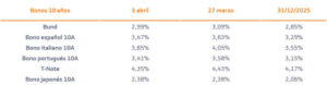 Análisis bonos. La expectativa de que el conflicto en Irán pueda estar cerca de terminar provocó la semana pasada una relajación inmediata en las rentabilidades de los bonos.Una resolución más o menos temprana modera el temor a una aceleración fuerte de la inflación y reduce la probabilidad de que los bancos centrales endurezcan sus políticas […]