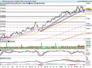En los meses las medias de 20 y 30 sesiones se han mantenido cruzadas al alza en el IBEX35. Ahora mismo nos encontramos en un momento clave por que la directriz alcista desde los mínimos del año pasaría por 17800 puntos, nivel que a su vez coincide con las medias de 20 y 30 sesiones. […]