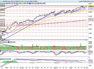 El canal bajista formado por el IBEX35 entre el 16 y 22 de septiembre finalmente se ha resuelto por la parte alta, esto deja al índice como unida resistencia en la zona de 15445 que son sus máximos anuales. Para corto plazo conviene vigilar la zona de máximos , en caso de no superar 15445 […]