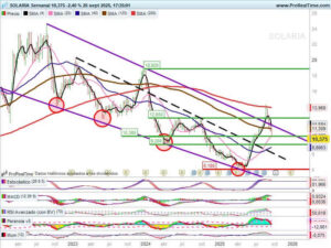 REDEIA Si vemos el gráfico en velas semanales el precio actual se encuentra perdiendo la media de 40 sesiones y la zona de soporte de los 16,80€. Es probable que si pierde valores de la cuña, busque la siguiente zona de soporte en los 15€, los cuales se encuentran muy próximos a la media tanto […]