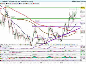 ALMIRALL Si vemos el gráfico en velas semanales el valor ha sido capaz de alcanzar nuevamente la zona de resistencia de los 12€. Momento de consolidación de dicha zona, donde de superarla holgadamente, intentaría poner rumbo hacia la zona de los 14€. Soporte en los 10,70€ y posteriormente los 10,25 y 9,79€. ALANTRA Si vemos […]