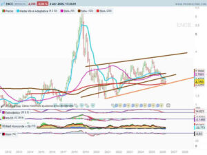 CELLNEX Velas mensuales. Precio inmerso en canal decreciente de l/p y vela de rebote mensual desde valores soportes sobre la banda inferior de dicho canal. Con volumen y probabilidad de buscar resistencia en la banda superior del mismo, umbrales en torno a los 34,50€. ENCE Velas mensuales. Análisis de precio atendiendo a indicador Ichimoku. Canal […]