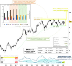 Moncler es la cotizada que menos ha caído desde los máximos históricos previos (-16,45% vs. caídas superiores al -40% en el resto). Presenta un aspecto técnico prometedor, con los indicadores lentos iniciando una nueva fase alcista y las estimaciones de los analistas volviendo a crecimientos en sus principales variables y márgenes a partir de este […]