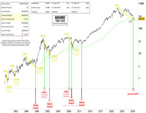 Adobe acumula una caída del 67% desde sus máximos históricos de finales de 2021. En los últimos meses el impacto de la IA ha penalizado a la compañía, que ha pasado de PER Forward (precio entre beneficios esperados a 1 año) de 50 veces a niveles actuales cercanos a 10 veces. Pese a las preocupaciones, […]