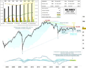 La cervecera más grande del mundo por volumen de producción, Anheuser-Busch InBev, no solo tiene un nombre extraño, producto de la fusión de Anheuser-Busch (Budweiser) y la belga Inbev, sino que presenta una evolución anómala en los últimos cinco años. En el gráfico inferior, desde su salida a bolsa, en frecuencia mensual, vemos el precio […]