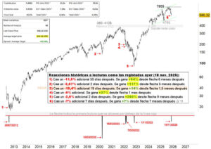 El pasado martes Strategy marcaba en niveles de 189 dólares una lectura extrema en sus indicadores. Estudiamos cuáles han sido sus reacciones históricas a lecturas como las de ese día y concluimos que, pese a que puedan producirse caídas adicionales (-4% momentáneo desde el pasado martes), siempre ha venido siendo bastante rentable comprar a unos […]