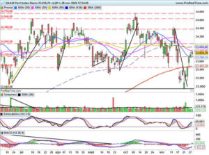 Desde mínimos en 22943 puntos el DAX ha ido subiendo dejando Gaps alcistas, desde el 1º en 23090 hasta el de 23720 puntos pasando por 23464 puntos…. En principio si el DAX se mantiene por encima de 23700 al cierre debería buscar 24040 y posteriormente 24400 puntos. En caso de pérdida del nivel de 23700 […]