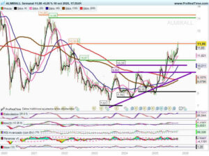 ALMIRALL Si vemos el gráfico en velas semanales el valor ha sido capaz de alcanzar nuevamente la zona de resistencia de los 12€. Momento de consolidación de dicha zona, donde de superarla holgadamente, intentaría poner rumbo hacia la zona de los 14€. Soporte en los 10,70€ y posteriormente los 10,25 y 9,79€. ALANTRA Si vemos […]