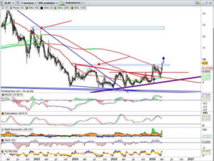 ALANTRA Si vemos el gráfico en velas semanales el valor continúa en un movimiento lateral, entre la zona de resistencia de los 9€ aproximadamente y la zona de soporte o mínimos en los 7,68€. La clave se encuentra en la superación de la zona de resistencia mencionada, los niveles de los 9€. ALMIRALL Si vemos […]