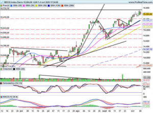 IBEX35 El comportamiento del Ibex35 sigue siendo muy alcista tanto a corto como a medio plazo. La estructura de mínimos crecientes iniciada desde la zona próxima a los 11.500 puntos continúa consolidándose, y el Ibex35 acomete una estructura de máximos y mínimos crecientes guiada por su directriz alcista y por sus tres medias móviles principales. […]