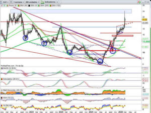Se comenta la situación técnica de los índices IBEX35 y DAX. Además se estudian los valores Solaria, Nextera, McDonalds, Iberdrola, Logista, Repsol, VISA, CIE y Ferrovial entre otros activos. Además se analizan las materias primas Oro y Plata. El IBEX, en «territorio comanche»: el valor al que mira Alberto Iturralde Video Análisis realizado por el […]